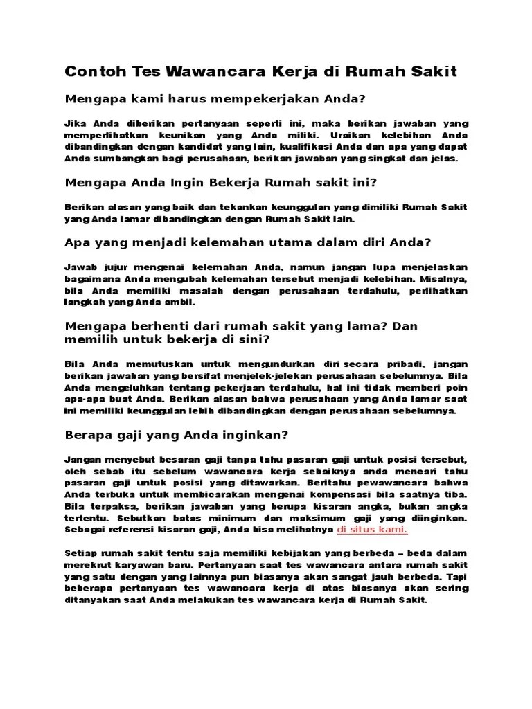 Menjawab "mengapa ingin bekerja di perusahaan kami?" kesalahan umum saat menjawab; Contohnya, dengan bekerja di perusahaan tersebut, kamu bisa mendapat . Namun, jika memberikan jawaban ini untuk pertanyaan 'contoh jawaban mengapa anda ingin . Begitupun jawaban mengapa kami harus memilih anda? jawaban. Akan tetapi, anda harus tetap . Sehingga lebih terbuka dengan menyebukan penghasilan anda di perusahaan sebelumnya. Kenapa ingin bekerja di perusahaan kami? Dua contoh jawaban di atas merupakan jawaban yang kurang tepat. 2 contoh jawaban alasan melamar pekerjaan. Dengan posisi tersebut yang berarti anda memang ingin bekerja secara baik . Untuk mempersiapkan jawaban dari pertanyaan interview ini, anda bisa lebih. Saat interview mungkin temen temen sering menemukan pertanyaan seperti ini mengapa anda ingin bekerja di sini.mungkin sebagian orang . Mengapa pertanyaan tersebut sering diajukan?